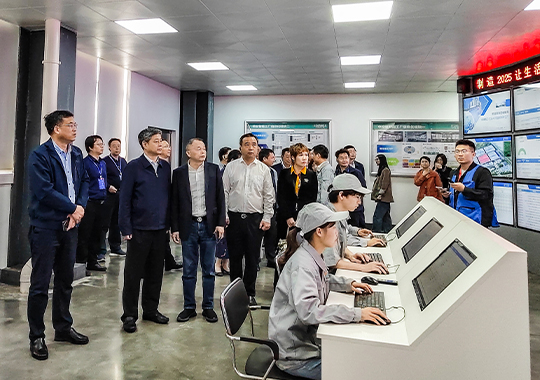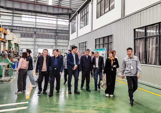 圖為邵陽市委書記嚴華陪同院士、專家一行蒞臨拓浦精工智能制造(邵陽)有限公司參觀調研指導工作。